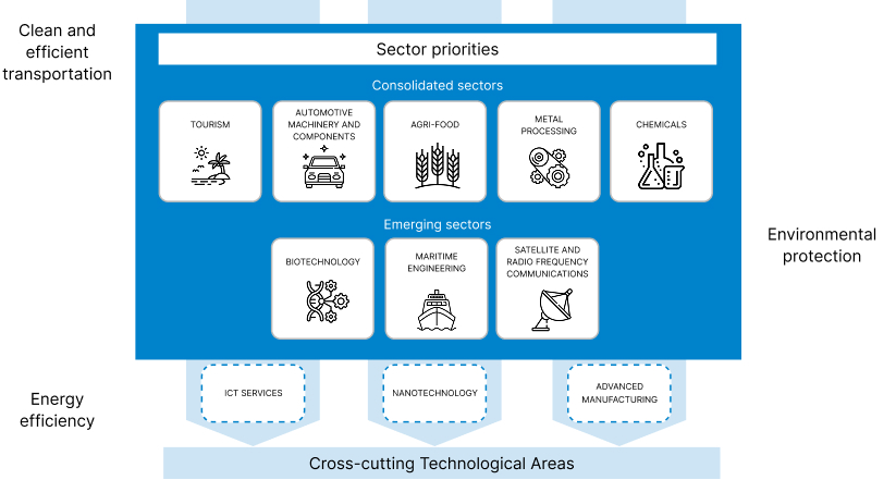 Some of these coincide with sectoral priorities or with the cross-cutting technological areas of the 2020 Innovation and Research Strategy for the Intelligent Specialization of Cantabria RIS3.